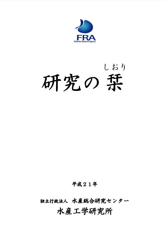 「研究の栞(しおり)」は、水産工学に関する研究成果について、一般の方々にもご理解いただけるように、できるだけ分かりやすくとりまとめたものです。